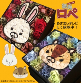 そんな『動物のお花屋さん ペリドット』から、「紙兎ロペ」のメインキャラクターの“ロペ”と“アキラ先輩”が登場。材料には造花などを一切使用せずに、100%プリザーブドフラワーと淡水パール、紅水晶(ローズクォーツ)などの天然石を使用しているとのこと。価格は、6,500円(税別)。