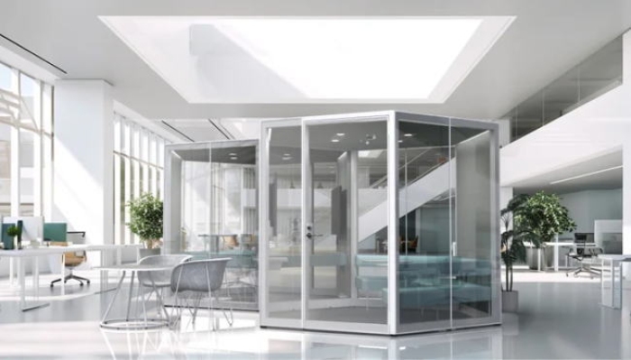 ガラス面を最大化し、抜け感のあるデザインへとアップデートすることで、オフィスの中心へと設置場所の拡張性が高まった。また、複数台並べたブース外面を活用することで人が集うハドルスペース(一時的なミーティングスペース)としても利用可能である。ホワイトボードはオプションでブース外側にも取り付け可能で、打ち合わせ前後のショートミーティング、ちょっとした作業などに最適なワークスペースを自由に構築でき、オフィスワーカー同士のコミュニケーションを誘発するとともに業務効率を高める。