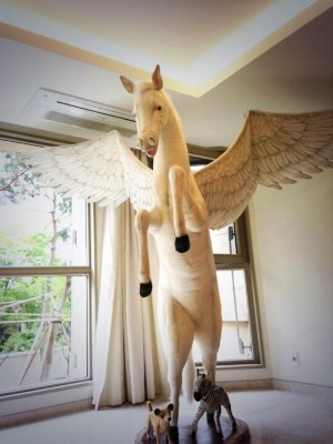 写真には、2本足で立ち上がった状態の大型のペガサス像が写っている。かなりの大きさで、頭部や背中の羽は天井にすれすれなほど。室内に置くオブジェとしては存在感がありすぎるような気も。メスが気に入らなった理由も気になるところだ。