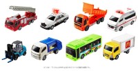 ハッピーセット「トミカ」は、はしご付消防車、パトロールカー、清掃車など子供たちが大好きな働く車が8種類用意されている。市販の「トミカ」よりサイズが大きめで、遊べる仕掛けが付いている特別仕様という。おもちゃは、おなじみの「トミカ箱」をイメージした紙箱に入っている。
