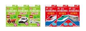森永乳業が新発売する「森永マミーキッズ トミカ りんご」とリニューアル発売する「森永マミーキッズ プラレール」[写真拡大]
