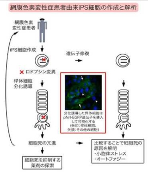 慶應義塾大学の小沢洋子講師らによる研究グループは、網膜色素変性症の患者からiPS細胞を作成し、そのメカニズムを解明することに成功した。