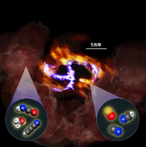 その結果、核周円盤に隣接する巨大分子雲には複雑な分子が多く存在するのに対して、核周円盤には比較的簡単な構造の分子しか存在しない事が分かった。これは、核周円盤内部が紫外線またはX線の放射が強く、大きな分子の存在できない過酷な環境であることを示唆している。