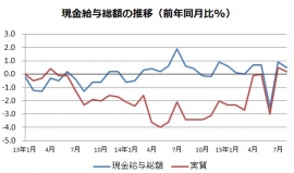 8月の実質賃金、2カ月連続の増加―伸び率は鈍化