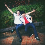 SUPER JUNIORのイェソンと俳優ヒョヌが、ドラマ「錐」の撮影中に高校生に扮した姿を公開した。写真:イェソンのツイッター[写真拡大]