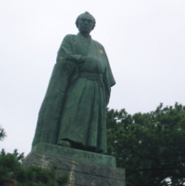 写真=桂浜に立つ坂本龍馬の銅像(高知市)。長崎で撮った有名な写真をもとに制作された。懐手にあるのは万国公法ともピストルともいわれる。 (情報提供:日本インタビュ新聞社=Media-IR)