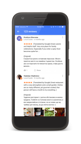 グーグルは25日、外国に行ってGoogleマップやGoogleの検索機能でレストランや観光スポットを見ると、そのレビュー記事が使用する端末機器で使っている言語に自動的に翻訳されるようになったと発表した。