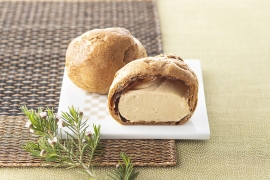 人気の「もこ」シリーズで、黒みつきなこ味。もこ生地は、黒蜜をイメージし茶色で、食感はふんわりもちっとし、黒蜜と香ばしいきなこを組み合わせ、口どけがなめらなかクリーム。