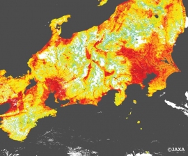 人工衛星から撮像された8月1日の本州中心部での地表温度 (c) JAXA[写真拡大]