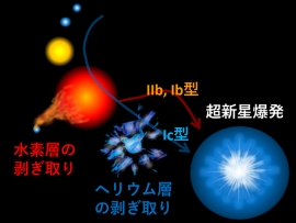 「大質量星」と呼ばれる太陽の10倍以上の質量をもつ恒星は、時間の経過とともに核反応が進み、中心から酸素、ヘリウム、水素の3層構造を作る。終末期になると酸素のコア内部に鉄のコアが形成され、超新星爆発を起こすことが知られている。ところがこの過程でヘリウムや水素が放出され、質量の多くを失う原因は未解明であり、天文学者が取り組む重要な課題のひとつであった。