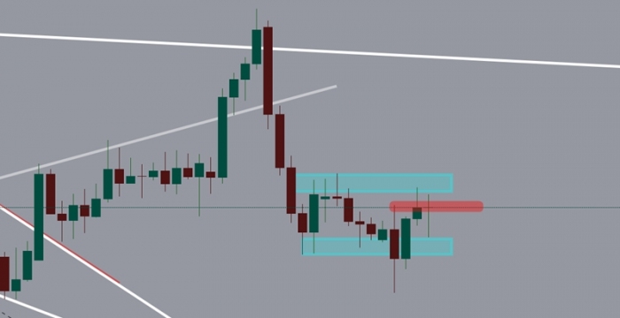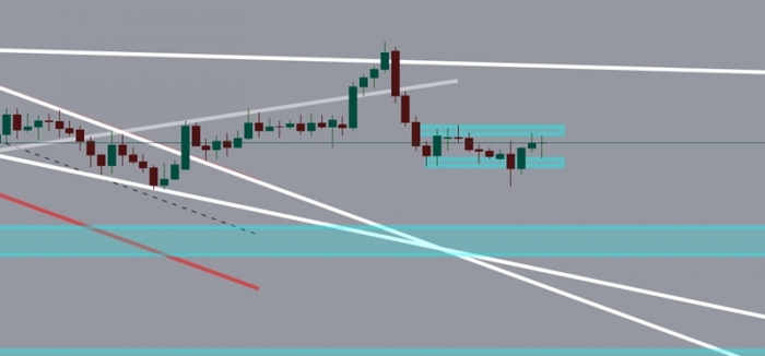 ●安値は価格帯が意識されており、水平線で2段階に支えられている