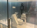 それは、ガラスの外壁で覆われた「透明のトイレ」。特殊ガラスを使用しており、トイレに人が入っていない時は透明で中が丸見え状態。トイレに入って施錠すると不透明な曇りガラスになって中が見えなくなるという仕組みです。