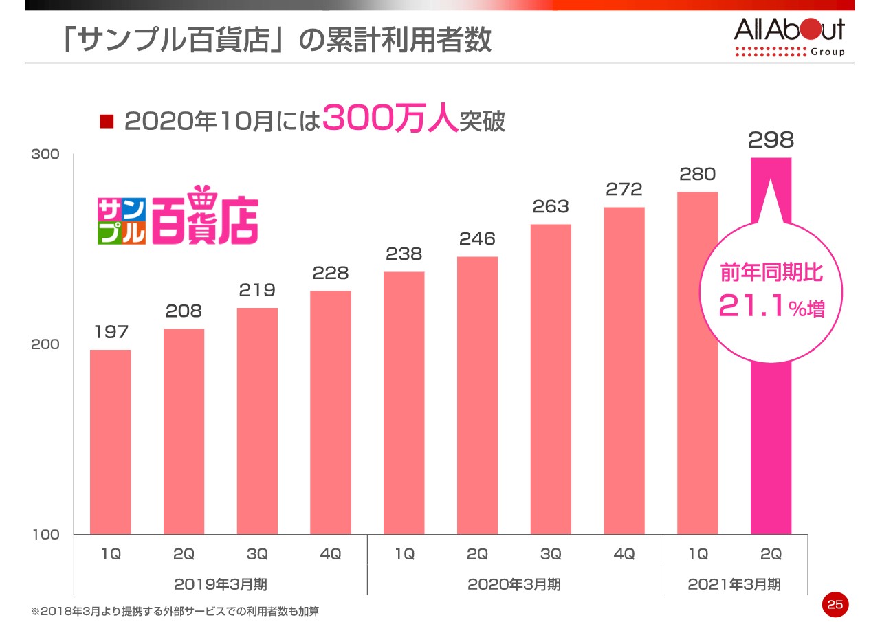 短期的には、オンラインイベントがうまくいっており、また「dショッピング」の共同運営も開始していますが、「サンプル百貨店」においても、これまで足りなかった「日用使い」を支える生鮮果実、肉、魚等、取り扱う商品のカテゴリー拡大を図っていきます。