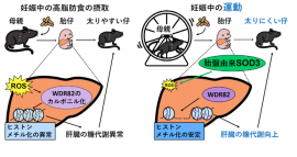だが妊娠中に母親が運動すると、胎盤からSOD3という活性酸素を除去する酵素タンパク質が作られ、糖代謝異常を防いでくれることが明らかになってきていた。そこで研究グループは、どのようなメカニズムでSOD3が働いているのかを調査。マウスの胎子の肝臓にSOD3を注入したところ、その子の生後の糖代謝能は向上していた。