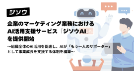 「ジソウAI」は、企業に対し主にマーケティングや広報業務における課題の発見から、AI活用戦略の設計、ツール導入、運用定着までを一貫して支援するサービスである。単なるツール導入に留まらず、組織全体のAI活用レベルを引き上げ、業務効率と生産性の向上を実現する。AIが「もう一人のサポーター」として機能し、事業成長を支える体制の構築を目指している。
