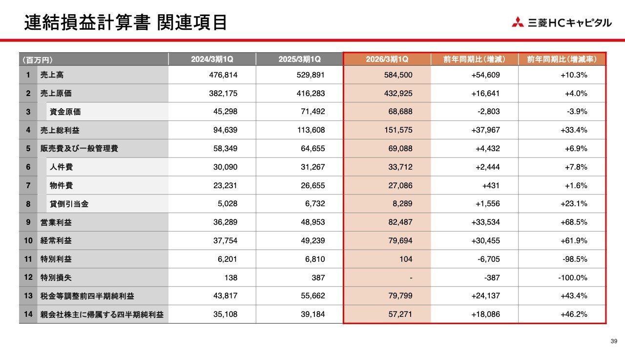 佐藤晴彦氏(以下、佐藤):2026年3月期第1四半期の決算説明会を開始します。本日ご説明を担当する三菱HCキャピタルCFOの佐藤です。本日はご多用のところ、みなさまご参加いただき、誠にありがとうございます。