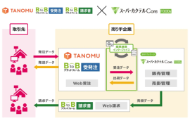 この標準連携インターフェースにより、「スーパーカクテルCoreFOODs」と「BtoBプラットフォーム受発注」「TANOMU」導入の際に、個別の連携システムを開発することなく、短期間でシステム連携を開始できるようになる。