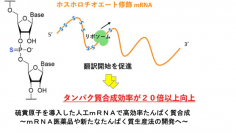 名古屋大学と科学技術振興機構は7日、mRNAの一部を酸素原子から硫黄原子に置き換えることによって、タンパク質の合成効率が20倍以上にもなる人工mRNAの開発に成功したと発表した。