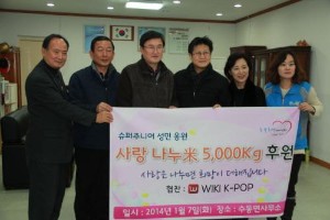SUPER JUNIORソンミンが、“愛の米”5トンを南揚州東部希望ケアセンターに寄託し、1月7日に行われた南揚州市スドン役場での伝達式に、ソンミンに代わって両親が出席した。