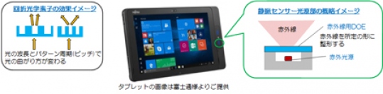 大日本印刷(DNP)は、LEDの点光源を照射すると表面に文字や絵柄などが浮かび上がり、真贋の判定ができる新しいリップマン型ホログラムを開発した。