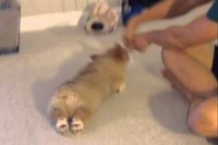 子犬が頑張ってパンチしようとしてるけど、ただ可愛すぎるだけです! 05/19 10:55