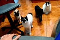 数匹のネコがコマ送りのような動きで飼い主に近づいていきます。 10/13 21:17