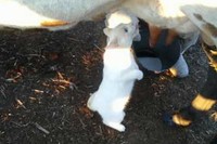 牛の乳搾り中にミルクをお口に入れてもらうネコちゃん! 06/18 17:25