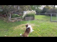 スプリンクラーの水に合わせてジャンプをするわんこ!カッコいい!! 01/21 19:08