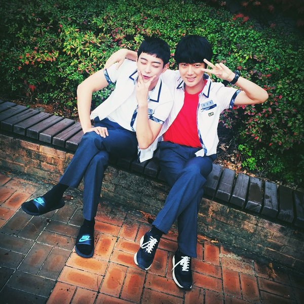 • SUPER JUNIORのイェソンと俳優ヒョヌが、ドラマ「錐」の撮影中に高校生に扮した姿を公開した。写真:イェソンのツイッター
