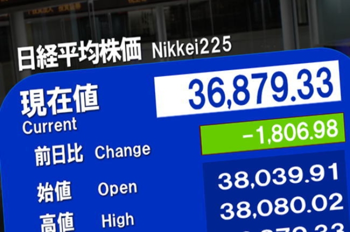 【株式市場】前場の日経平均は1280円安、米景況感指数やエヌビディア安など受け一時1563円安