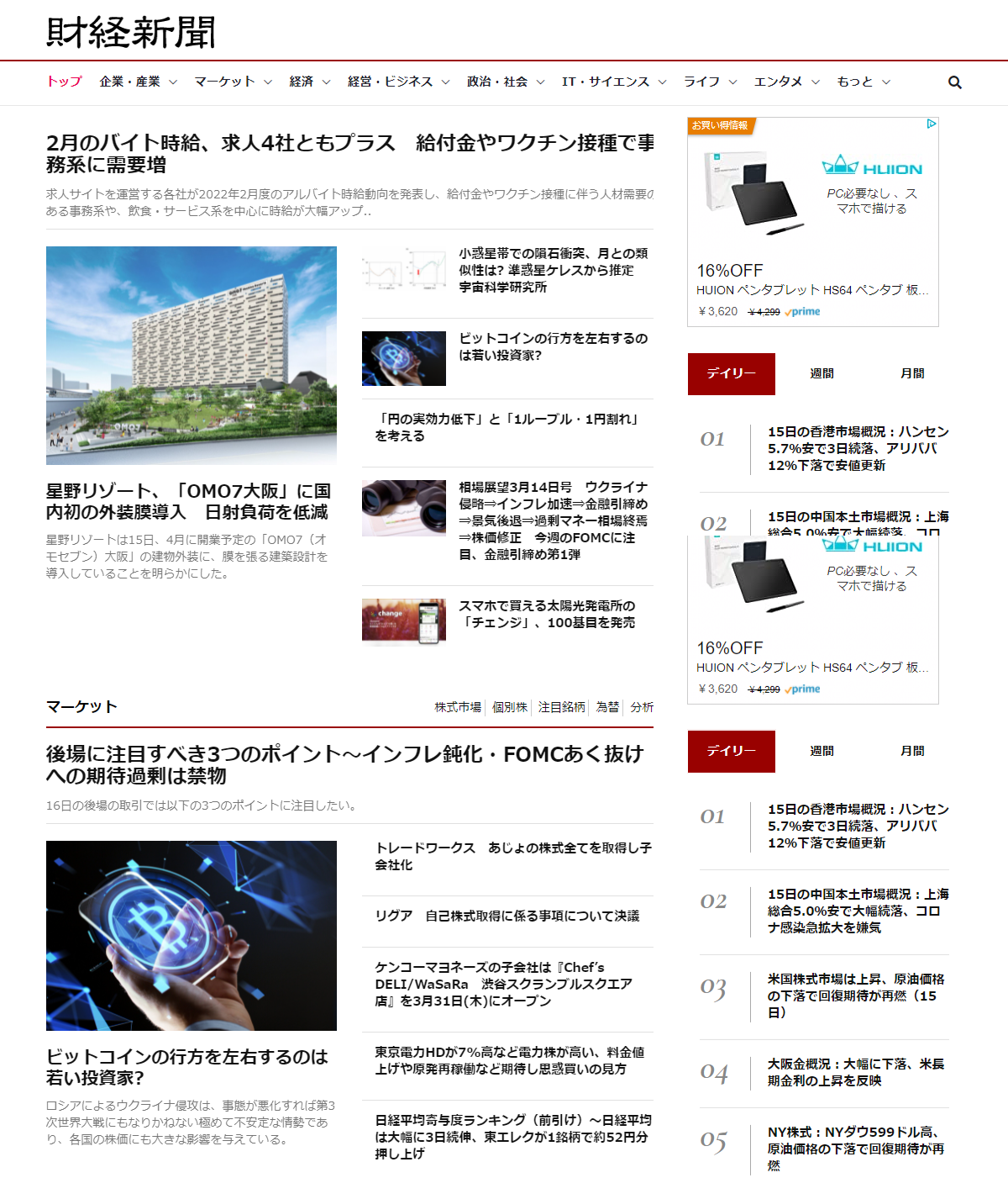 Plus News!で作成した記事は、必ず財経新聞のトップページに表示されます(表示期間はカテゴリにより変動)。