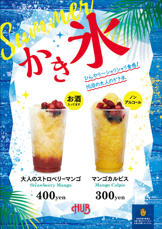 この度、株式会社ハブ(本社:東京都千代田区、代表取締役社長:太田 剛)が運営する英国風PUB「HUB」「HUB+82」におきまして、当社ならではのアルコールを使用した大人のかき氷を、8月7日(金)~9月30日(水)の期間限定で販売いたします。ノンアルコールタイプもあわせて販売いたしますので、お酒の苦手な方も是非一度お試しください!