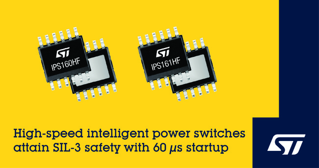 STマイクロエレクトロニクス(NYSE:STM、以下ST)は、インテリジェント・パワー・スイッチの製品ファミリに安全計装システム用の高速起動インテリジェント・ハイサイド・スイッチ「IPS160HF」および「IPS161HF」を追加しました。両製品は、起動時の遅延時間が60µs未満で、安全度水準(SIL)クラス3のアプリケーションにおけるインタフェース・タイプCおよびDの要件を満たしています。
