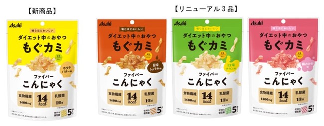 アサヒグループ食品株式会社(本社 東京、社長 尚山勝男)は、ダイエットサポート食品「リセットボディ」シリーズで2019年8月から展開している「もぐカミファイバーこんにゃく」から、『もぐカミファイバーこんにゃく ホタテバター味』を、9月7日に全国で新発売します。また、既存の『もぐカミファイバーこんにゃく旨辛しょうゆ味』『もぐカミファイバーこんにゃく うま塩チキン味』『もぐカミファイバーこんにゃく 梅おかか味』3品も同日にリニューアルして発売します。