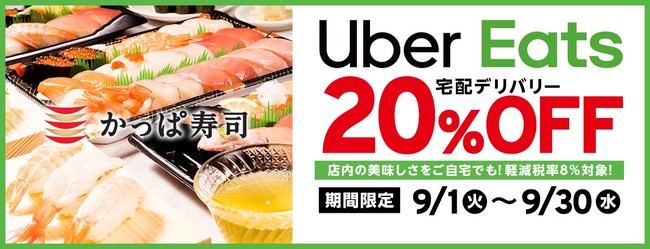 9月1日(火)~9月30日(水)の期間、かっぱ寿司 Uber Eats対象店舗にて