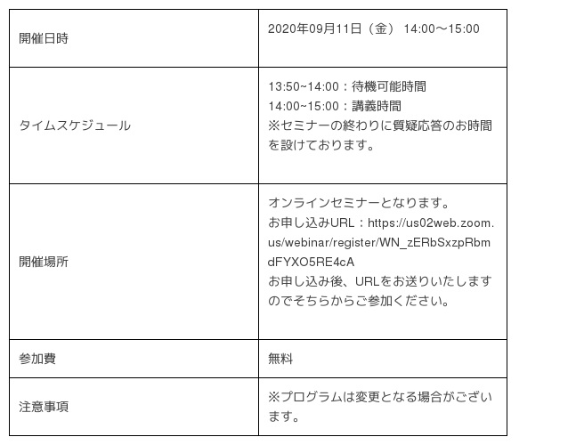 第一回のセミナー詳細は以下となっており、今後も引き続きセミナー開催を実施してまいります。