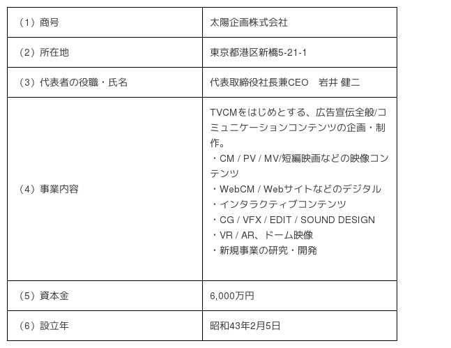太陽企画は創業以来、TVCMをはじめとする広告宣伝全般のコンテンツの企画・制作を行い、年間約300本以上のTVCM制作実績を持ちます。