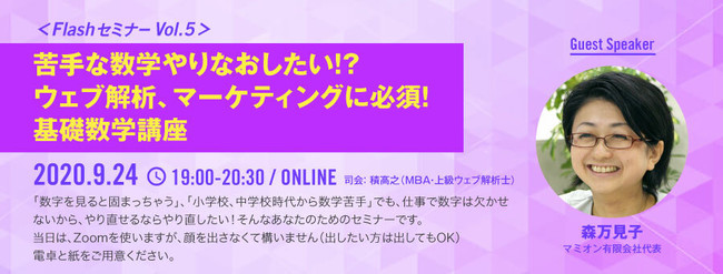 2020/9/24開催 <オンライン>FlashセミナーVol.5 苦手な数学やりなおしたい!? ウェブ解析、マーケティングに必須!基礎数学講座