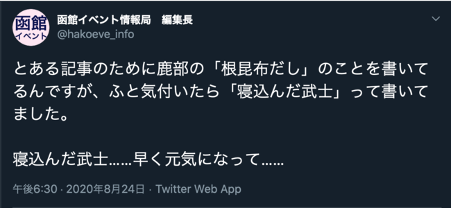 「寝込んだ武士」は、Twitterのこんな投稿から 始まりました。