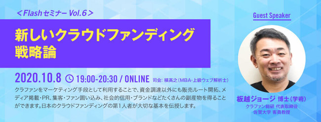 2020/10/8開催 <オンライン>FlashセミナーVol.6 新しいクラウドファンディング戦略論