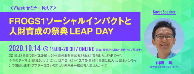 2020/10/14開催 <オンライン>FlashセミナーVol.7 FROGS1ソーシャルインパクトと人財育成の祭典LEAP DAY