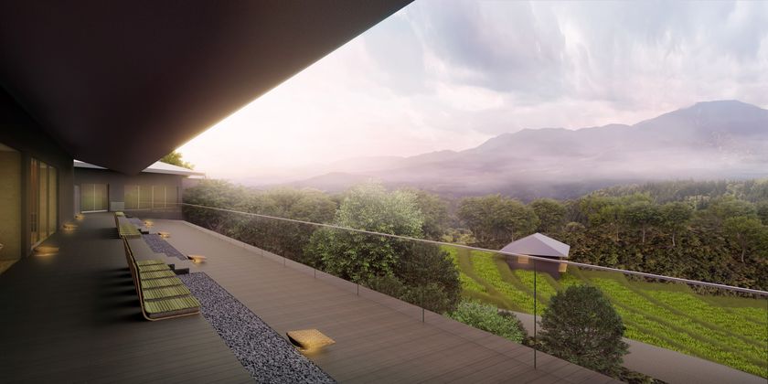 基本設計・意匠監修は隈研吾建築都市設計事務所が手がけ、農村の奥座敷の風格を感じるエントランスロビーや、まるで棚田のように広がるランドスケープを一望できる長い濡れ縁、雄大な由布岳に面した大浴場など、由布院の豊かな自然を心ゆくまで感じられるデザインを予定しています。