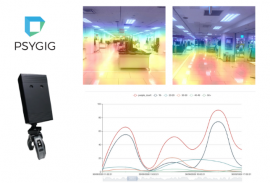 混雑が予想される会場に人数カウント機能および年代推定機能付のAIサーモカメラを設置し,年代別の来場者の数や密集度を可視化するものです。