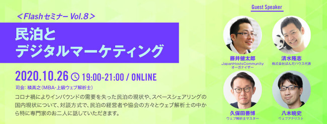 2020/10/26開催 <オンライン>【無料】FlashセミナーVol.8 民泊とデジタルマーケティング