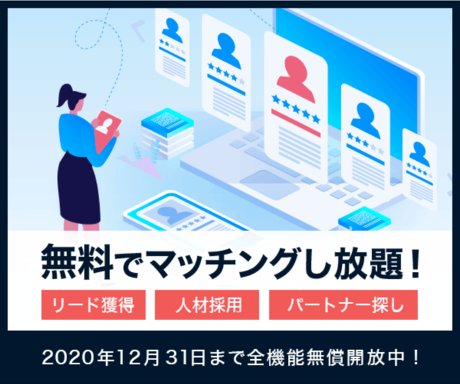 より多くの方に「ビジマッチ」を体験していただけるよう、12/31まで有料プランの機能も含め、全機能を無償で利用することができます。気になった方はぜひこの機会に「ビジマッチ」をご利用ください。
