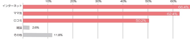 園選びについての情報源は、「インターネット」(66.4%)、「ママ友」(62.4%)、「口コミ」(50.2%)と続き、園側から出される情報だけでなく、第三者の評価も重視していることがわかりました。(表3)