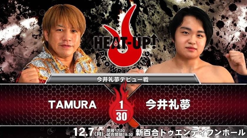 今井礼夢は、聴覚障がいのハンディを持っていますが、二度目のプロテストに合格、ヒートアップ代表のTAMURAとデビュー戦を行います。また、同日、川上真吾(SHINGO)も同団体の兼平大介を相手にデビュー戦、2名の新人がプロとしてスタートを切ることになりました。