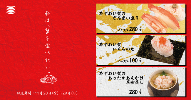 コロワイドグループのかっぱ寿司(カッパ・クリエイト(株) 本社:神奈川県横浜市 代表取締役社長 小澤俊治)は、2020年11月20日(金)~11月29日(日)の期間限定で「本ずわい蟹」を販売いたします。
