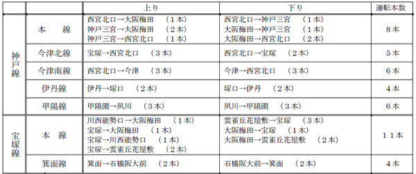 ※神戸線、宝塚線は全て普通