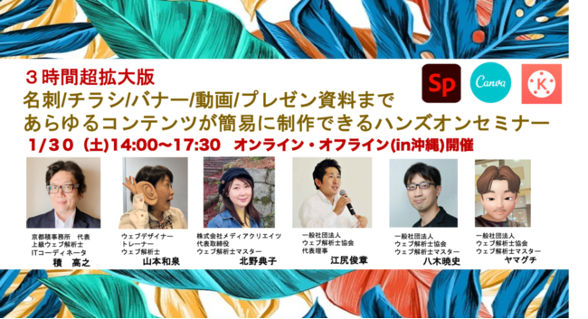 2021/1/30【3時間超拡大版】名刺/チラシ/バナー/動画/プレゼン資料まで あらゆるコンテンツが簡易に制作できるハンズオンセミナー(両開催:オンライン/オフラインin沖縄)